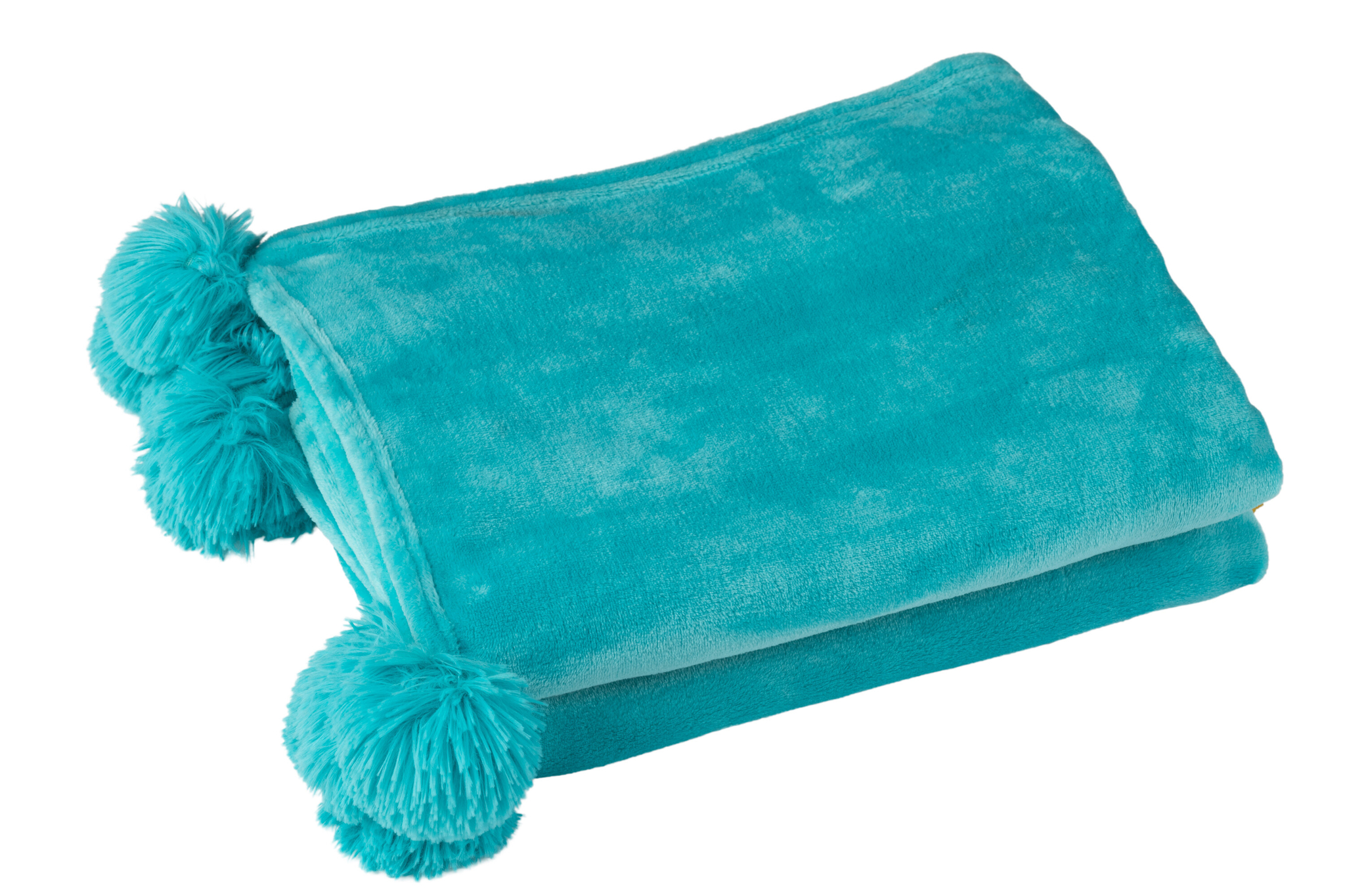 Azurblaues kariertes Polyesterplaid mit Pompons.