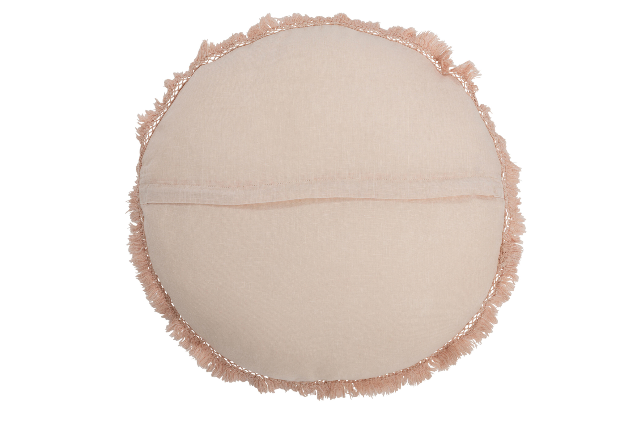 „Kissenrund aus luxuriösem Samt-Baumwoll/Leinen-Gemisch in einem eleganten Lachsrosa.“